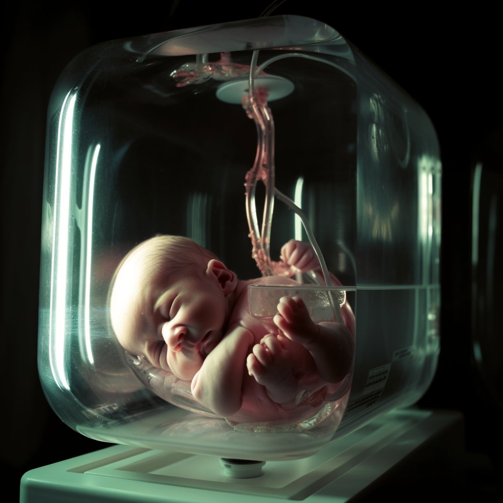 "Procreation, artificial womb, artificial life, baby, futuristic, photography, film photography, hd photography, photograph, aged photography, crisp and detailed photograph, transhumanism"
