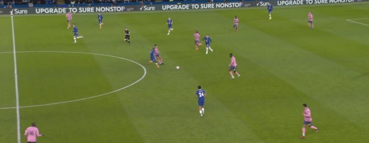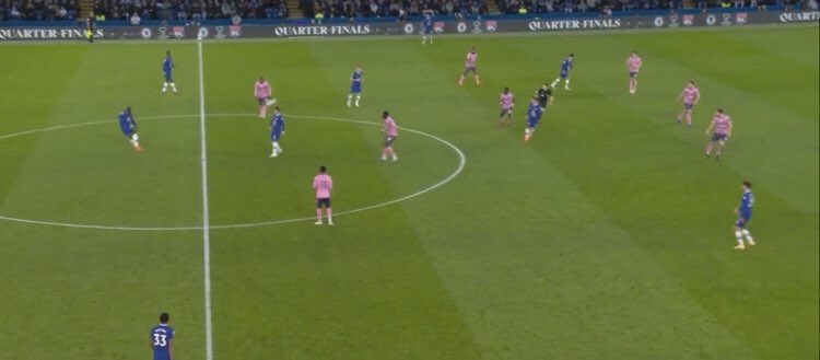 But here’s the importance of the keeper coming out in possession, Kepa steps up attracting Doucoure & with 2 simple passes Koulibaly is free, then Pulisic drops deeper & again the Everton defence doesn’t follow (better pass from Felix & we might score)