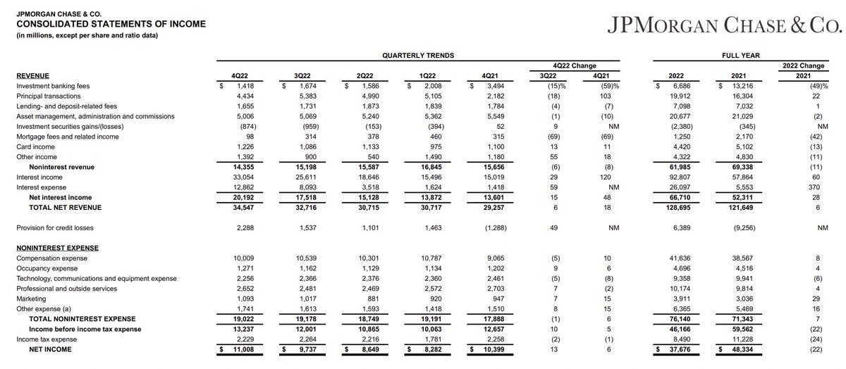 I dont claim to be an expert on reading a bank's financial statement. If you notice any discrepancies, please let me know and i can learn from it as well. This article in particular helped me better understand the financial situation at $JPM: seekingalpha.com