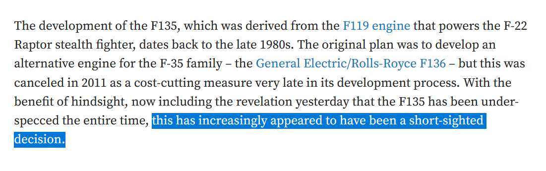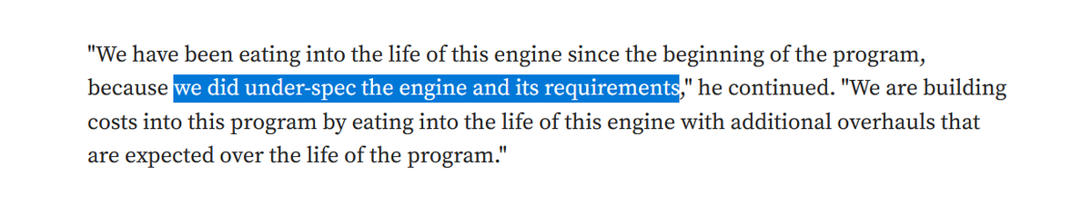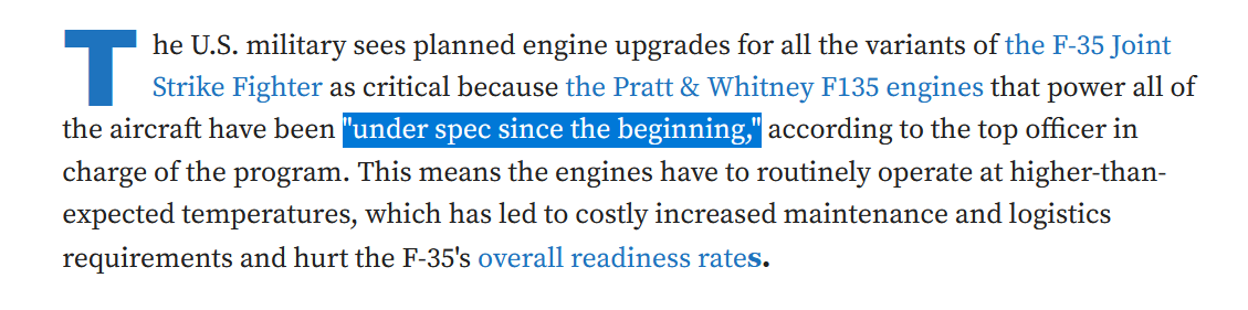 Meaning that P&W never fucking delivered on their promise and they sold this lie to dozens of nations to make billions off of taxpayer's expense. And only NOW are they admitting it.