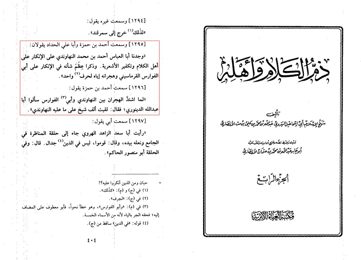 And regarding Imām Abū al-ʿAbbās al-Nihāwandī (d. ~370), who was very harsh against Ahl al-Kalām and would make takfīr of the Ashāʿirah, Abū ʿAbdillāh al-Dīnawarī said, “I met one thousand scholars who are in agreement with Al-Nihāwandī.” (Credit: @OneofYoda)