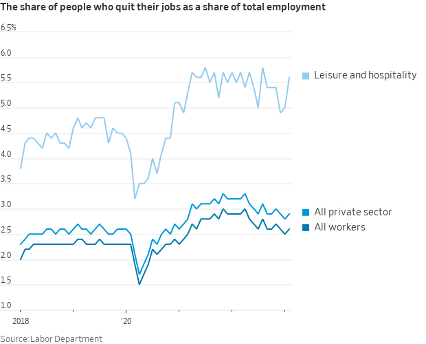 The quits rate ticked up in February after ticking lower in January, with a larger increase in quits among leisure and hospitality workers