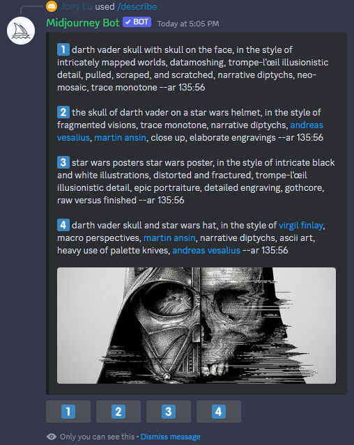 Midjourney 推出了 /describe 指令,可以逆向工程任何風格的圖片,讓 AI 直接變成你的詠唱師。