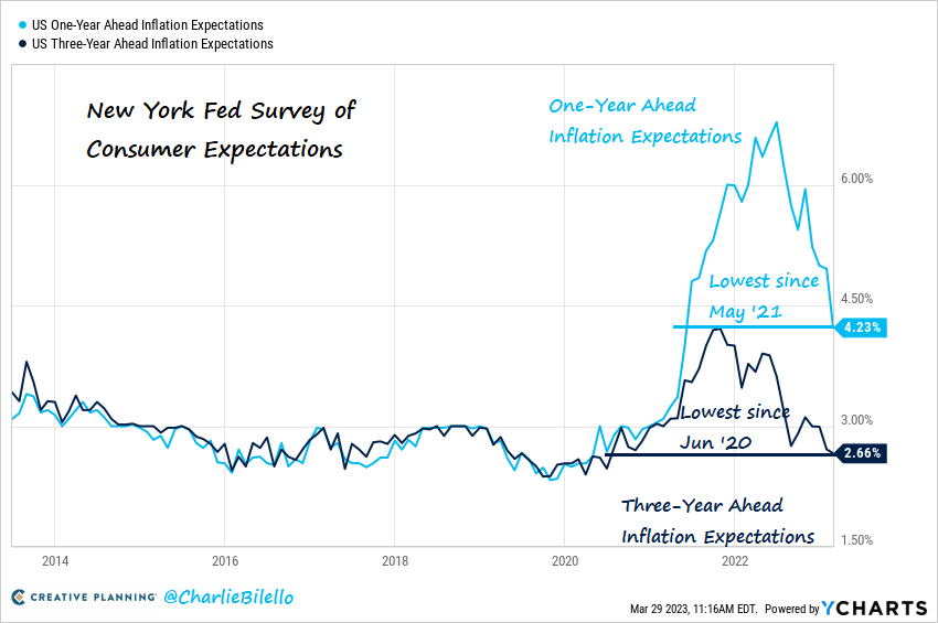 -3-Year ahead inflation expectations are down to 2.7%, the lowest since June 2020.