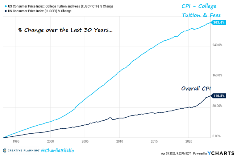 56% of Americans polled by the WSJ said that a four-year college degree was not worth the cost, a record high. Last 30 years: College Tuition has more than quadrupled while overall inflation has a little more than doubled.