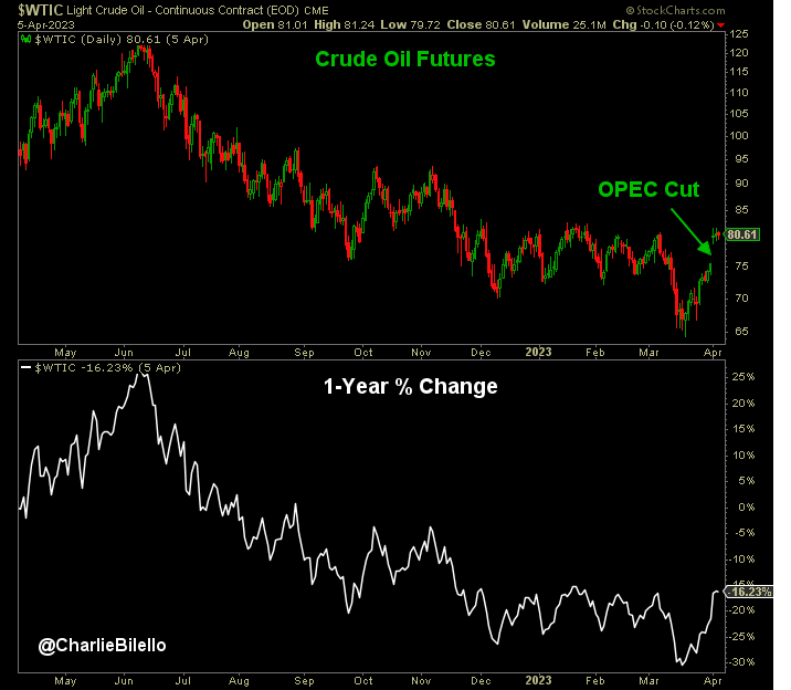 Crude Oil prices jumped back above $80/barrel after OPEC announced it will be cutting output by 1.16 million barrels per day. Prices were as low as $65 just a few weeks ago.