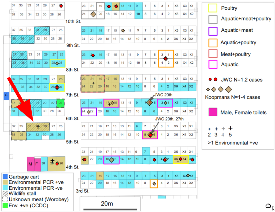 In summary, the analysis of Liu et al. and their conclusion that the data cannot prove that animals were infected and that humans may have brought the virus to the market are totally consistent with the analysis here.