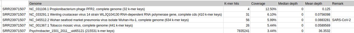No SARS-CoV-2 was detected using this kmer based approach, the read level (and read ammount and distribution to be confimed after more detailed analysis) if just too low to be detected.