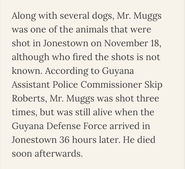 This is really funny to me - not this part but later. Jonestown had a chimp named Mr. Muggs that Jones adopted. It was later among the dead at the (😵💫) clean up operation.