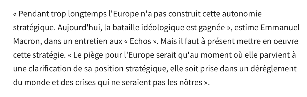 "Pendant trop longtemps l'Europe n'a pas construit cette autonomie stratΓ©gique. Aujourd'hui, la bataille idΓ©ologique est gagnΓ©e."