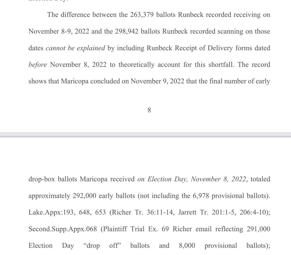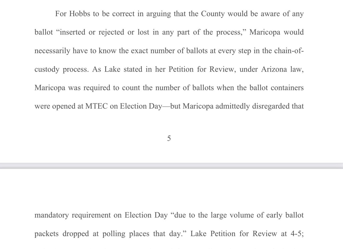 In her reply on appeal, @KariLake pointed out that the 35,563 early ballots were scanned by Runbeck, but remain unaccounted for in the receipt forms from Runbeck. This is simple math done in rebuttal to Hobbs statement that they followed CoC procedures. They used Hobbs own…
