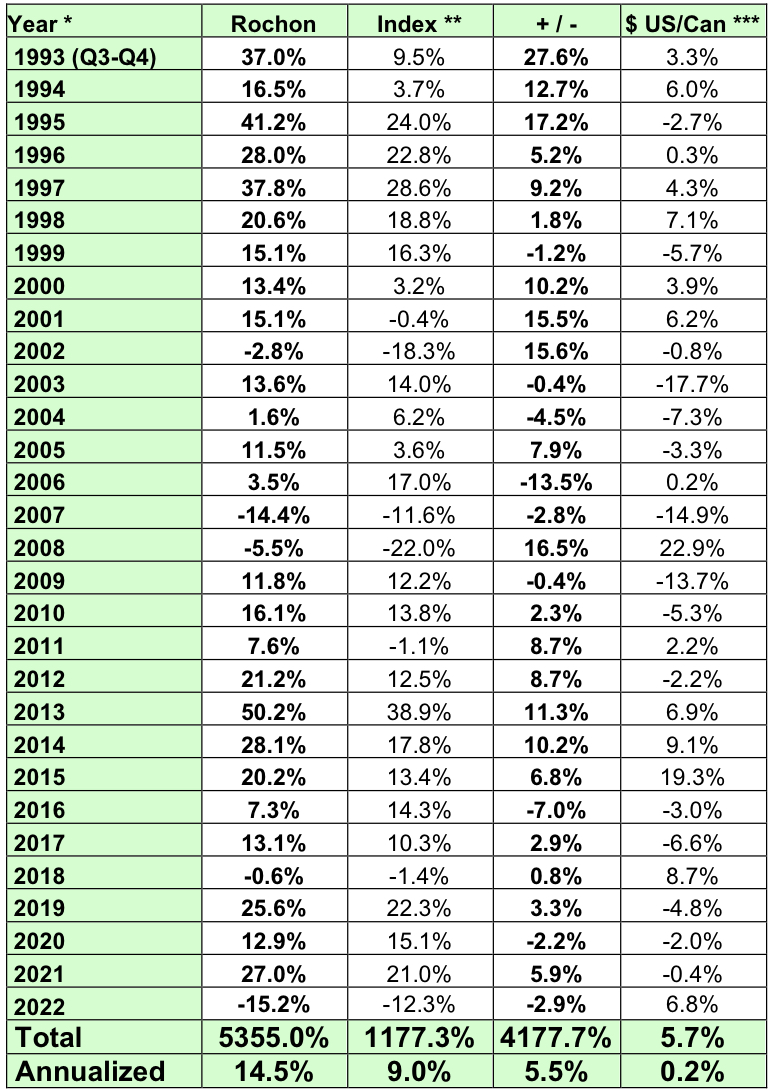 3/ 2022 performance enjoyed a 4.6% tailwind from currency (as it's reported in CAD). This said, currency has "only" been a 0.2% annual tailwind during the 30 years.