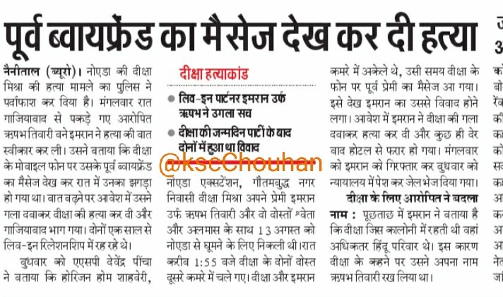 106. नैनीताल, उत्तराखंड/ 15 अगस्त 2021: हिंदू लड़की दीक्षा मिश्रा (30) (UP निवासी) की गला दबाकर हत्या प्रेमी इमरान ने की! इमरान ने अपना फर्जी नाम ऋषभ तिवारी बताया था
