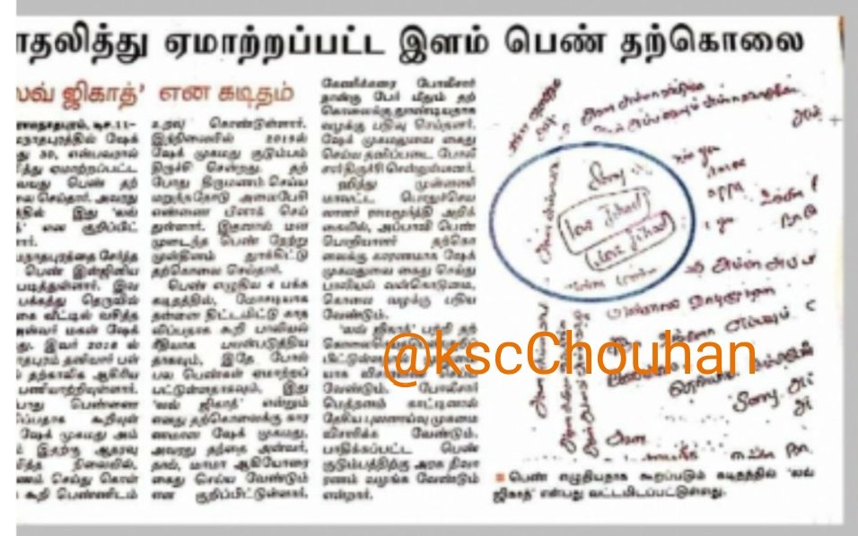 108. मेला पल्लीवसल, तमिलनाडु/ नवंबर 2021 (मस्जिद) हायर सेकेंडरी स्कूल शिक्षक मुस्लिम समशाद निशा ने हिंदू लड़की कविता के साथ अश्लील हरकतें की छात्रा कविता (17) ने जहर खाकर आत्महत्या की