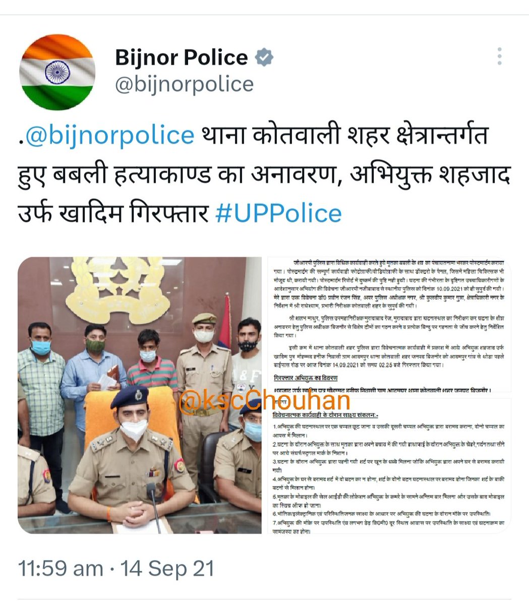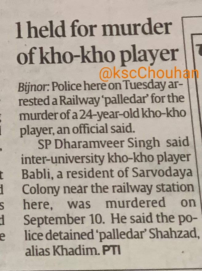 109. बिजनौर, UP/ 10 सितंबर 2021: दलित हिंदू लड़की बबली ( उम्र 24/ खो-खो राष्ट्रीय खिलाड़ी) की हत्या शहजाद खादिम ने की