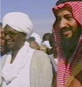 Sheikh Osama celebrating with Sudan's president Omar Bashir.