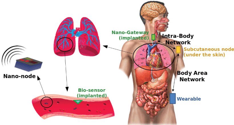 Nano-networks use micro- and nano-devices for bodily