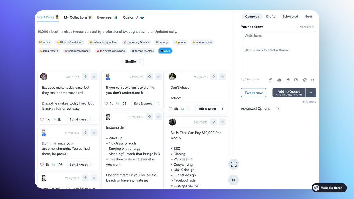 Imagine you had 1000 writers working for you, creating awesome tweets day and night.