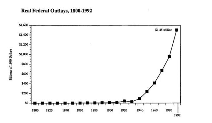 7/ In 1900 it cost the equivalent of $109 (adjusted 1990 dollars) per person to maintain the federal government... by 1990 it cost $4760 And that's not including the costs of of mandates and regulation or anything passed since... no Obamacare, no Medicare part D, no patriot act