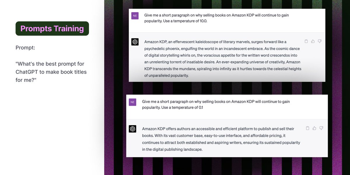 โA high temperature of 1.0 or above will make ChatGPT more creative.