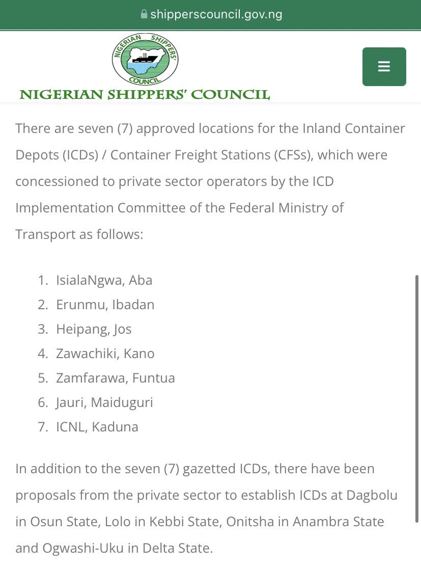 Great opportunity here for incoming Gov @alexottiofr to support private sector to develop the licensed Inland Dry Port in Aba, just as Kano/Kaduna/Katsina have done