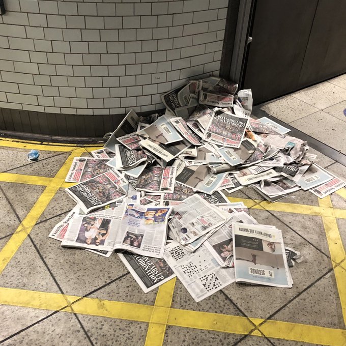 43. A homeless man made a bed of newspapers about the coronation... #Coronation #kingcharles #NotMyKing