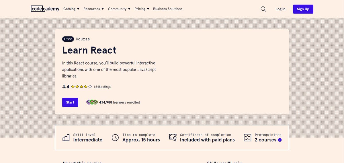 ◦ Interactive React courses