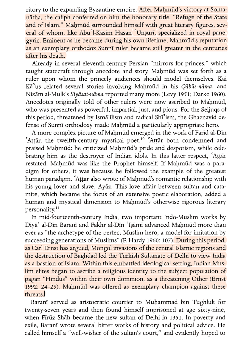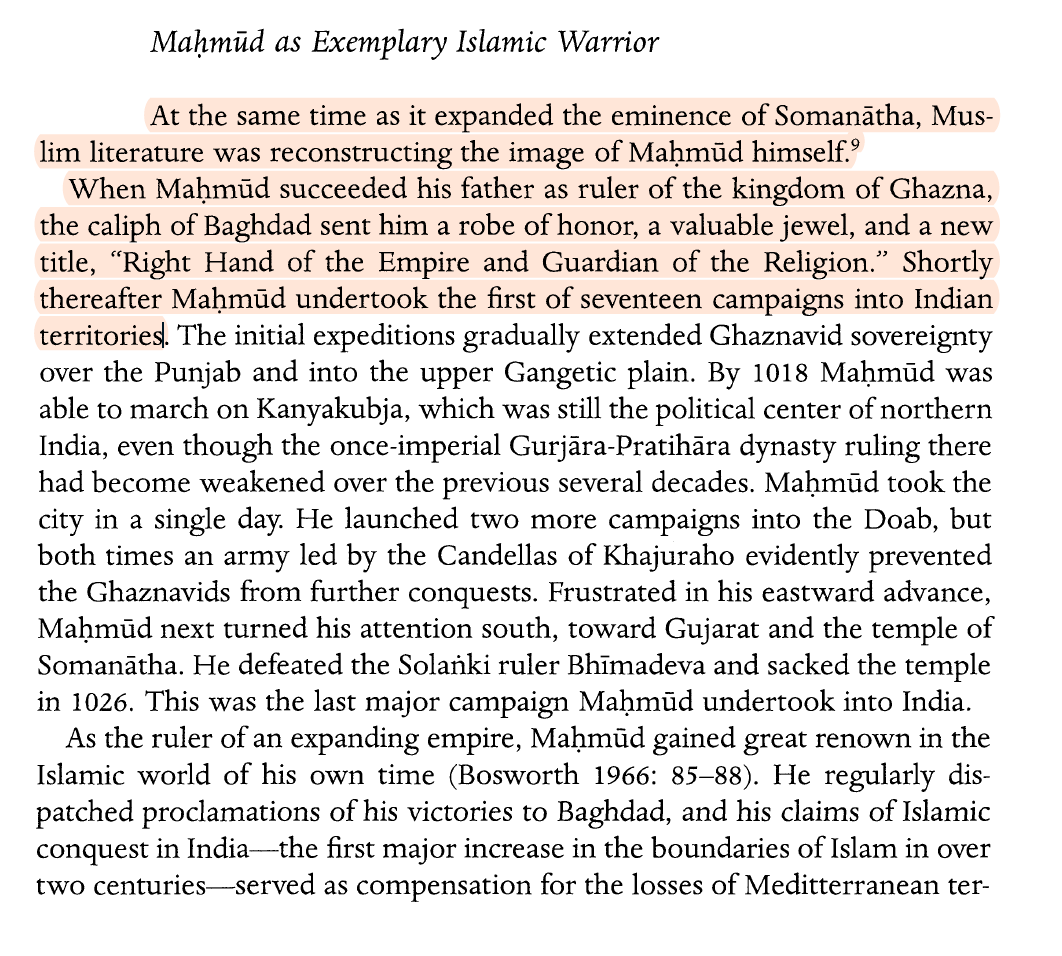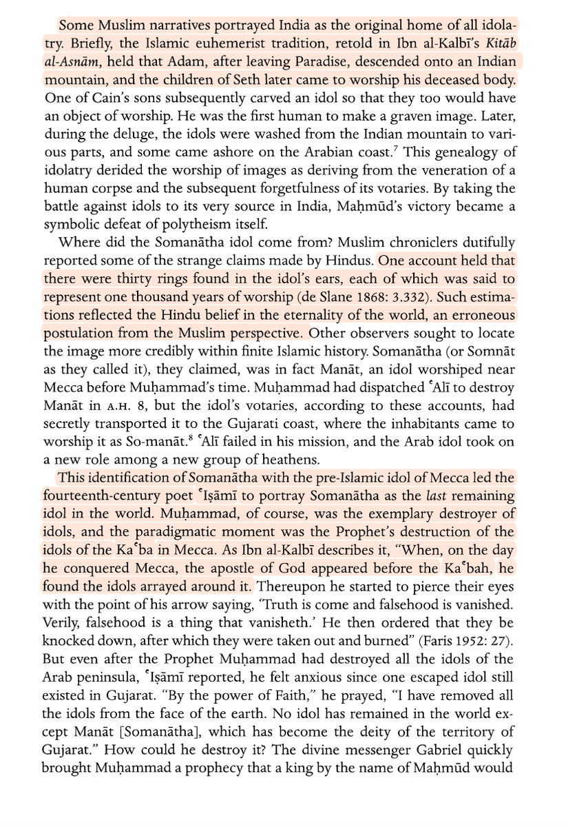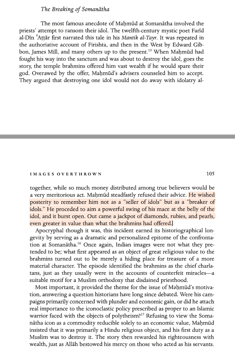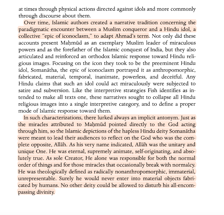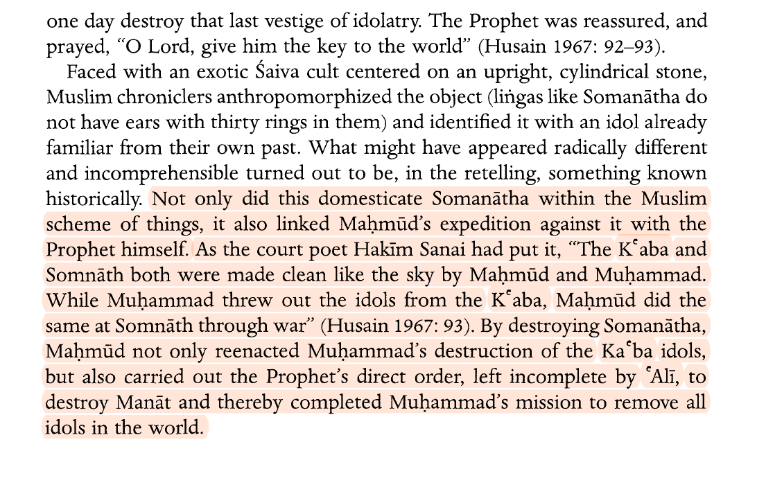 “Not only did these accounts present Maḥmūd as an exemplary Muslim leader of miraculous powers and as the forefather of the Islamic conquest of India, but they also articulated and reinforced an orthodox Islamic response toward Hindu religious images."
