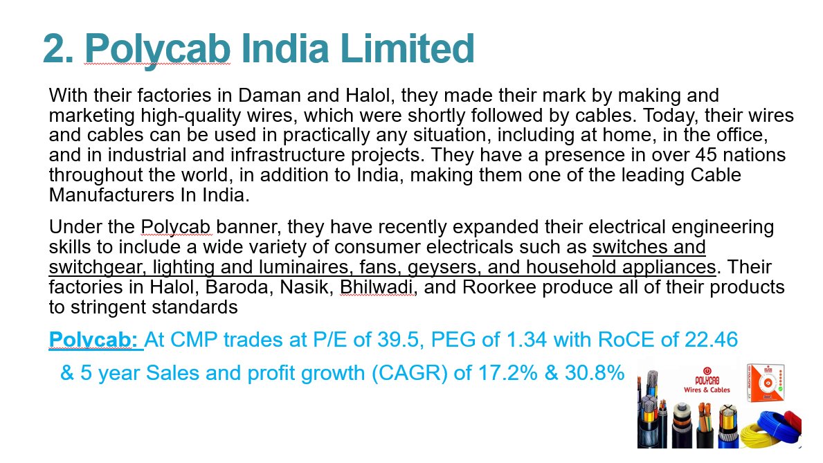 The wire & cable market in India, which comprises nearly 40% of the electrical industry, is growing at a CAGR of 15%. Lets have a quick dive into 'why' this sector will growth faster & also look at some #stocks for long term investing !