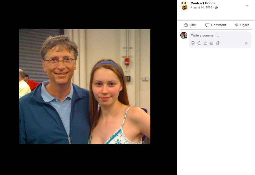 From her old facebook page, looks like Antonova and Gates met at least as early as 2009. (And my god, does she looks like Greta Thunberg)