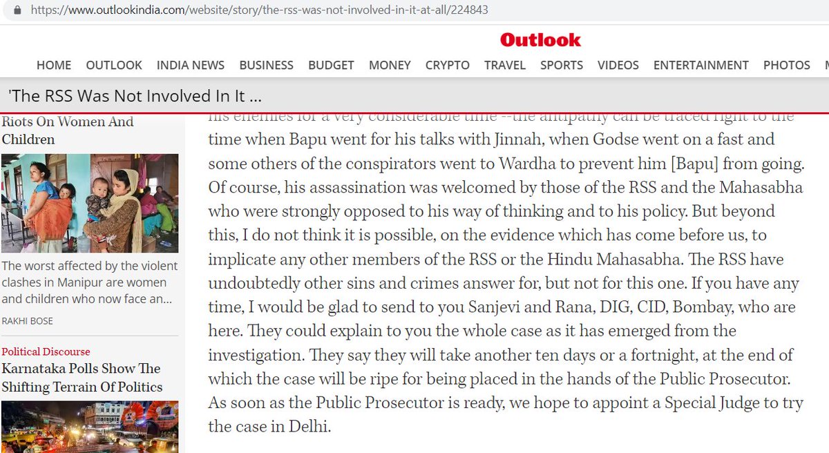 Just 23 days later, Patel wrote to Nehru that RSS was NOT guilty of Bapu's assassination