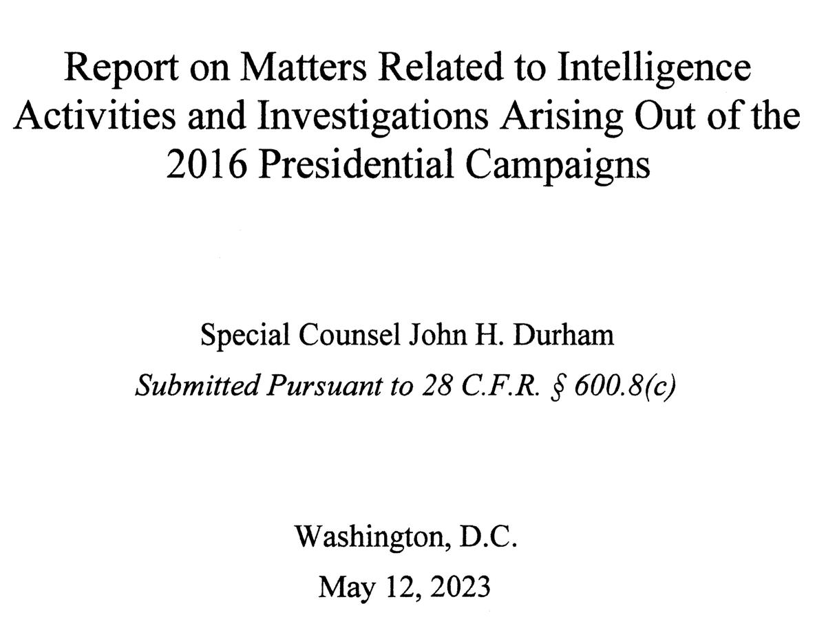This is the report from the John Durham Special Counsel's Office. It is one of the most important documents in the history of the U.S. Government. It's 300 pages long.