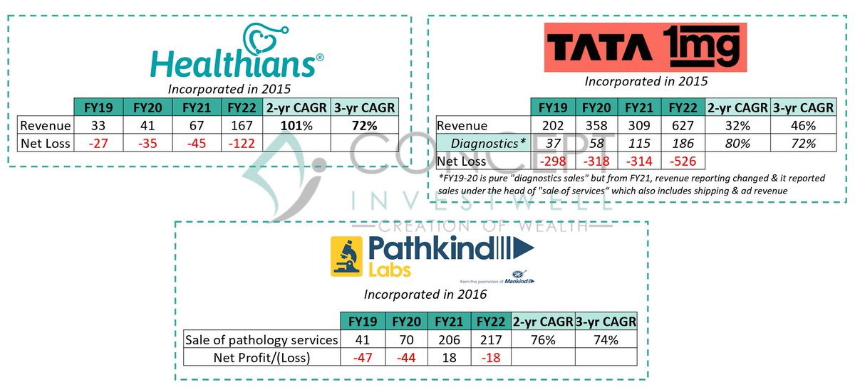 You might also think that Tata 1MG & Healthians crossed 100cr in less than 10 years. Remember covid revenue is baked in those numbers. Once covid is absent, scaling will normalize.