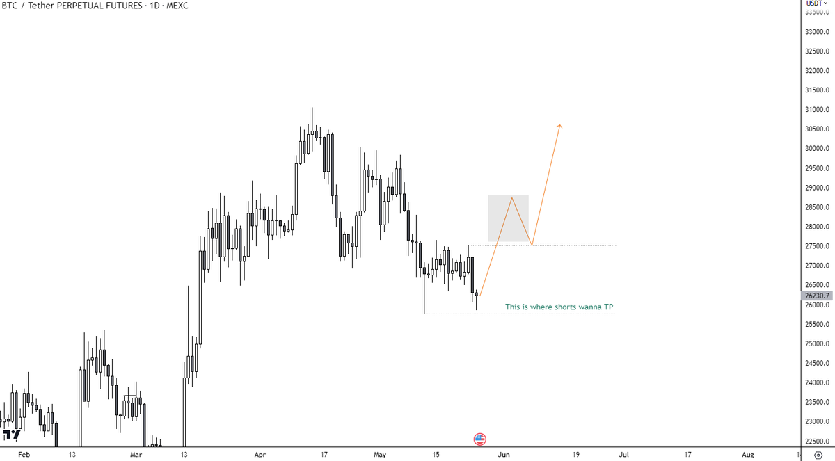 Every short built in the past two weeks is looking to TP at 25800$ and every long is planning to buy 25K.