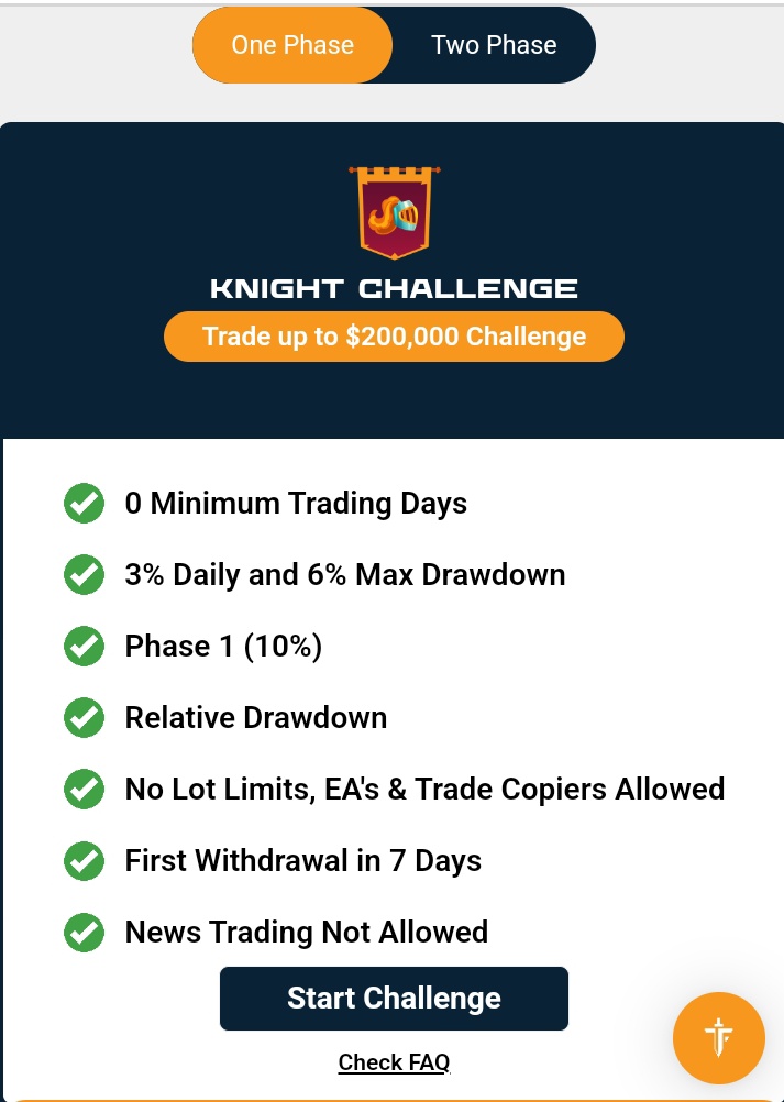 I got the drawdown type on the knight challenge of @thefundedtrader