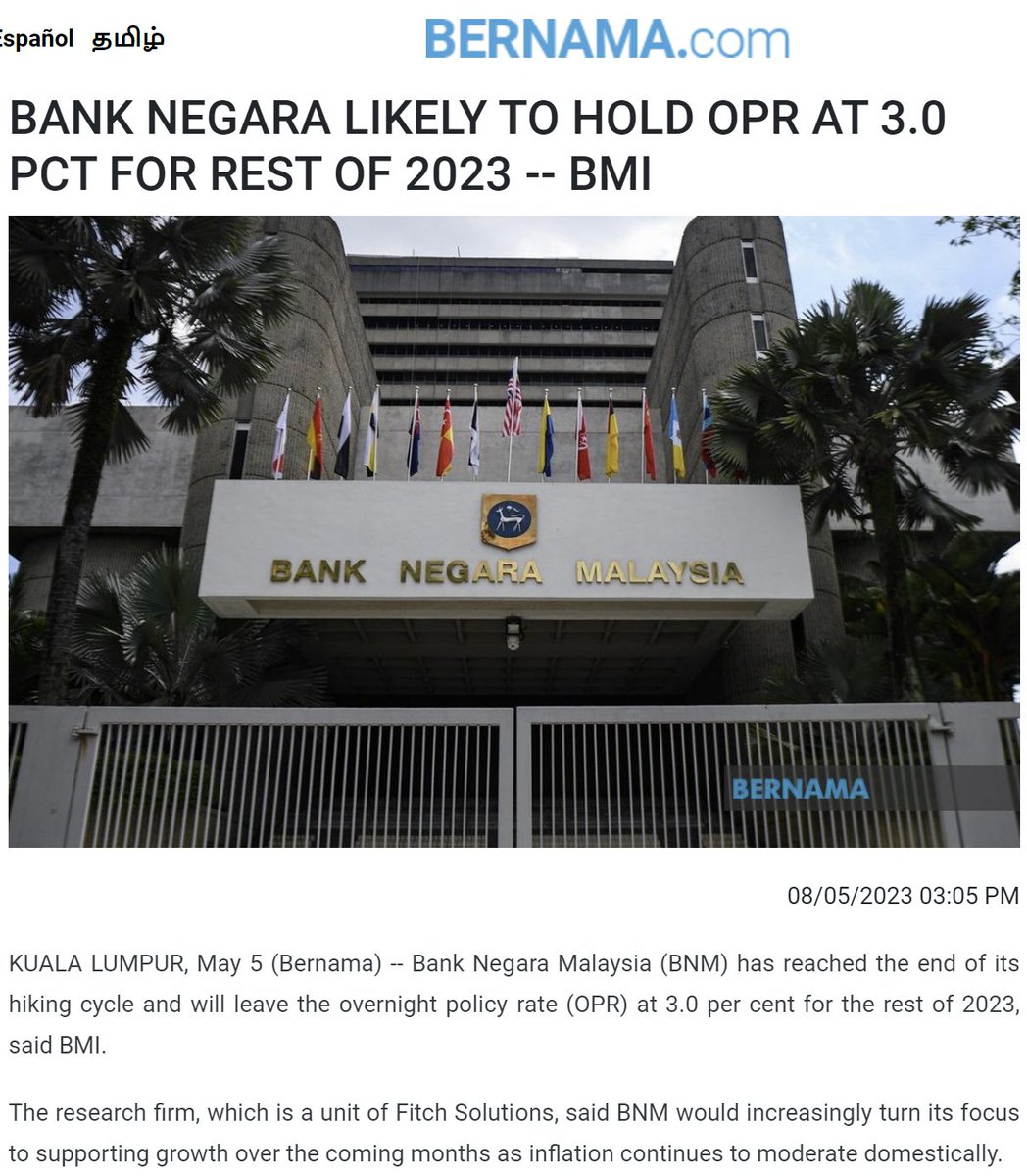 • Expectations on BNM to hold the OPR steady at 3.0% for the rest of the year.