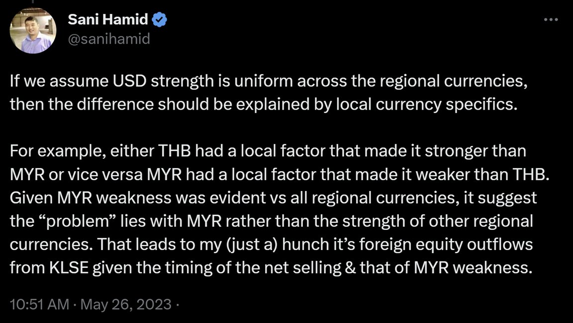 Economist @sanihamid believes that this is due to foreign net selling of assets.
