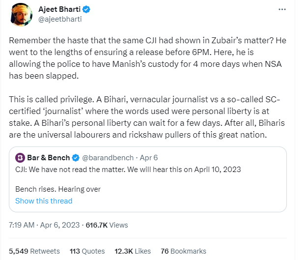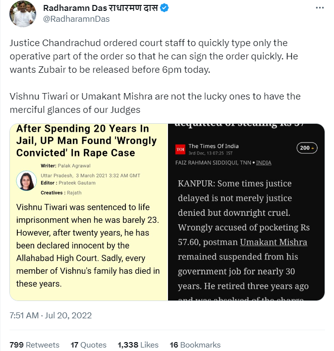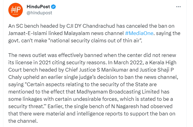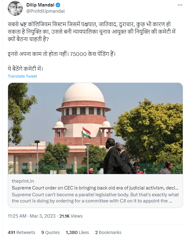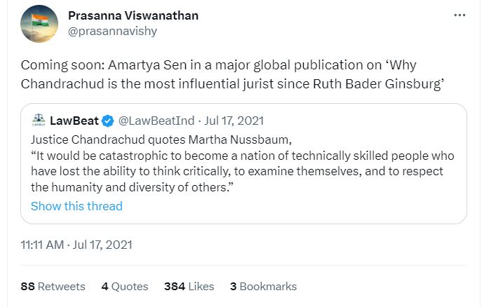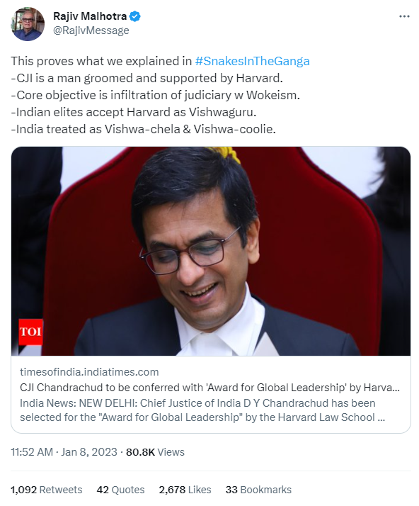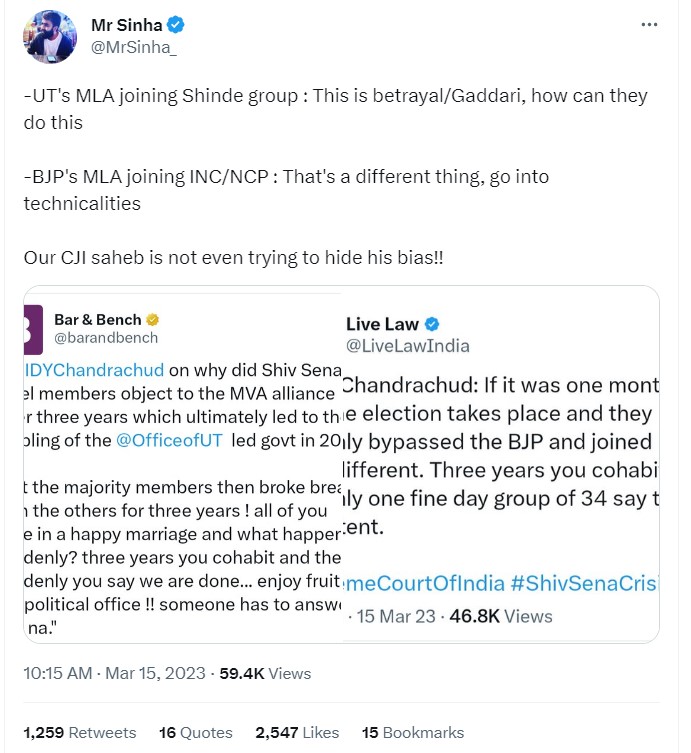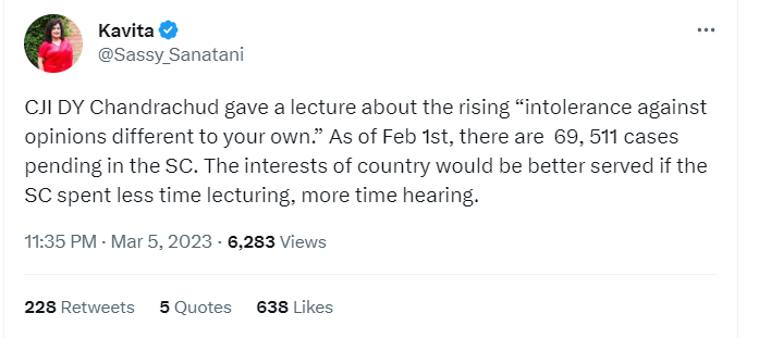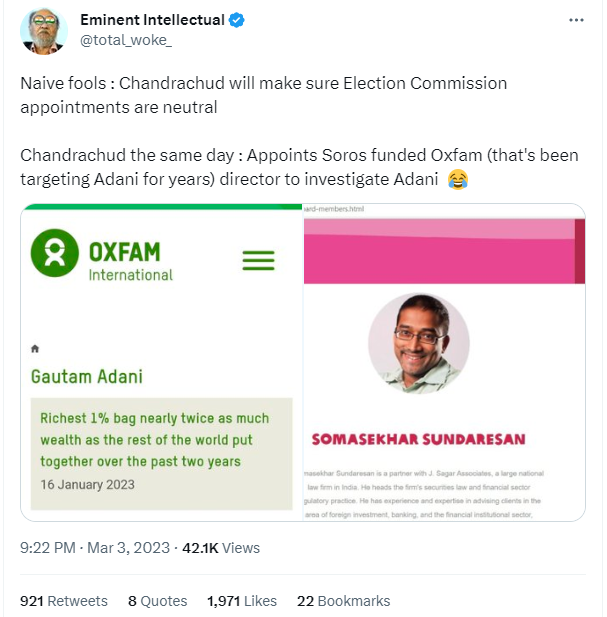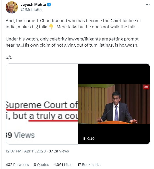 These tweetstorms are posted within a day or two after any major news around the SC. So even if opposition leaders start cheering the CJI for a judgment, eventually the digital influencers have much stronger ability to dominate the discourse.