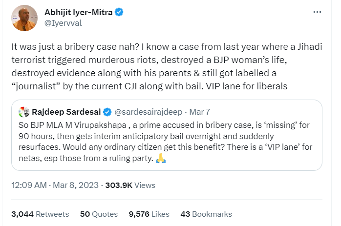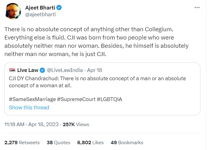 The most effective in trending CJI narratives is @ramprasad_c, who takes a directly insulting tone, whereas #2 @Iyervval does this through snark.
