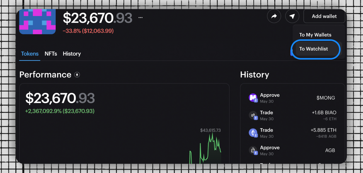 "If you don't have a subscription to Nansen, you can use @zerion instead: