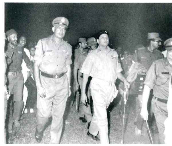 I got into my jeep and proceeded to the Headquarters Eastern Command, when suddenly to my utter surprise there was a hail of bullets. Before I could collect my wits together, I realised that I had been shot atβ a direct violation of the surrender accord agreed upon a volte face+