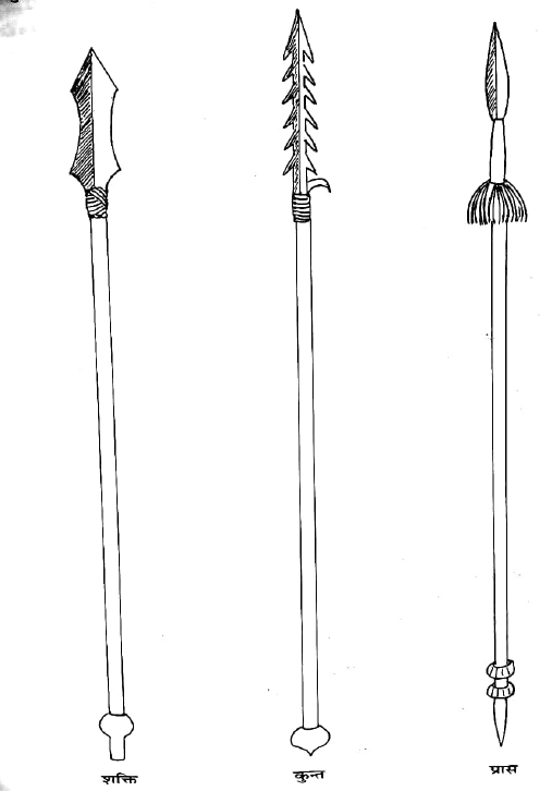 7. AgnipuraαΉa narrates, Dhanurveda as having five angas, yantramukta, pΔαΉimukta, MuktasandhΔrita, mauka and bΔhuyudαΈha. Yantramukta means using weapons with the help of machines. It involves kshepini, bow machines, etc. PΔαΉimukta means using weapons by hand, stone, mace, etc. MuktasandhΔrita means which can be used by either throwing or holding it. Kunta is an example of the MuktasandhΔrita type of weapon. Which is used by not renouncing from the hand, is known as Amukta. The sword is an example of it. Bahuyudha means fighting by hand without using any weapons.