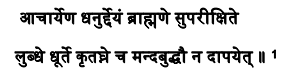 Dhanur Veda also narrates the training of weapons in detail. It deals with the training of students and also describes the ideal time and place for starting training. The Acharya will teach the science of archery only to those who have successfully come through the tests, and they should not be greedy ungrateful, and foolish people.