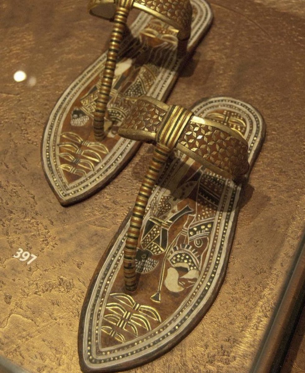 In 1922, Carter's excavation efforts in the Valley of the Kings led to the unearthing of Tutankhamen's tomb. Nestled amidst a vast array of treasures, the sandals stood out as a testament to the exquisite craftsmanship of the period. Made from strips of gold and carefully woven reeds, these sandals were designed to adorn the feet of the young pharaoh during his journey to the afterlife.