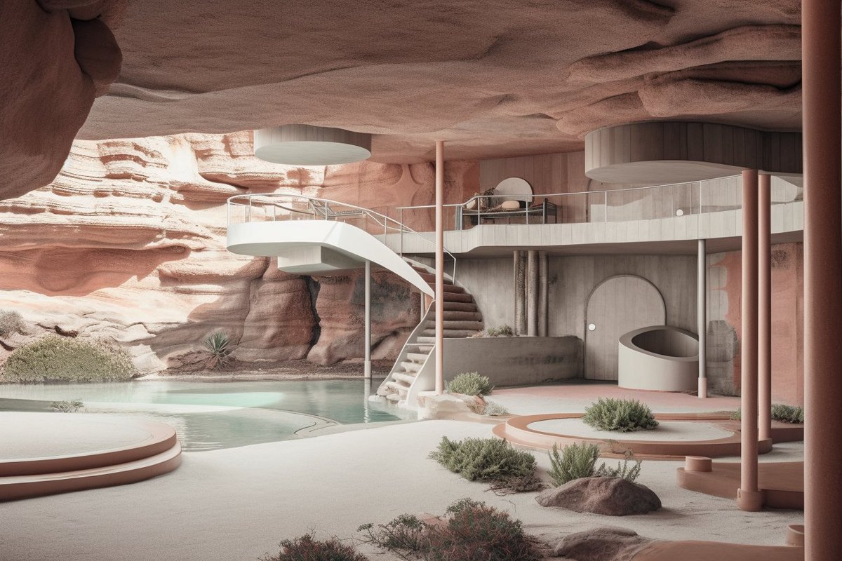 A photo of a [places.public], [architecture.extremeLocation], by [architecture.architect], [color.palette] --ar 3:2