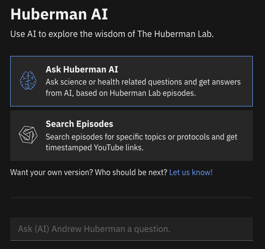 Huberman AI vous aide à trouver des conseils "santé" selon vos besoins et selon ce que vous recherchez.