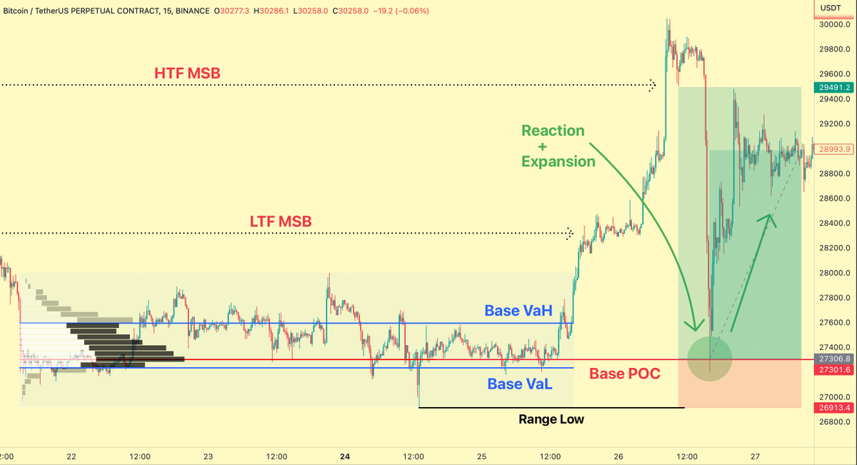 The stop loss can be below low of the range. In price action terms, it will be below the SFP or deviation of range low.