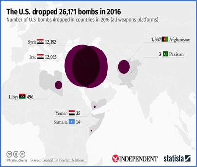 In 2016 alone, US dropped over 26,000 bombs in these seven countries