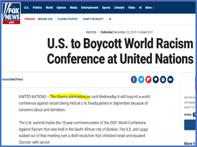 29. #BarackObama’s one of the most shameful act as President of the US was that he boycotted the UN Conference on Racism in 2009
