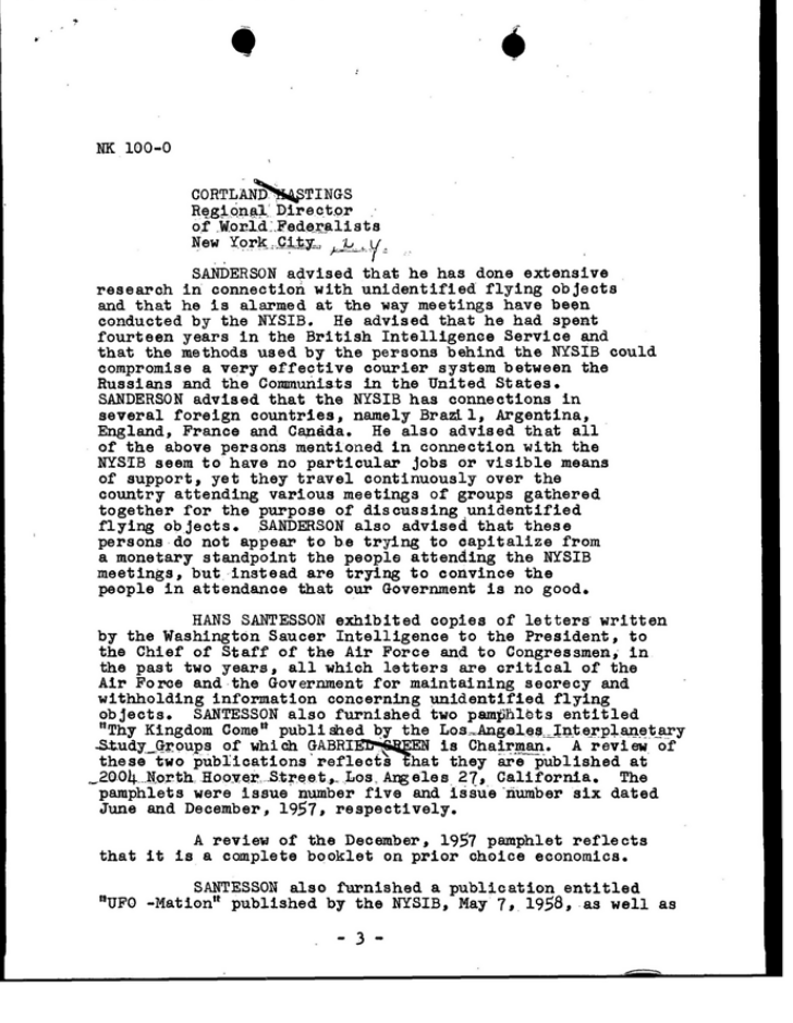 The FBI recently posted Sanderson's file. This memo appears to be it.